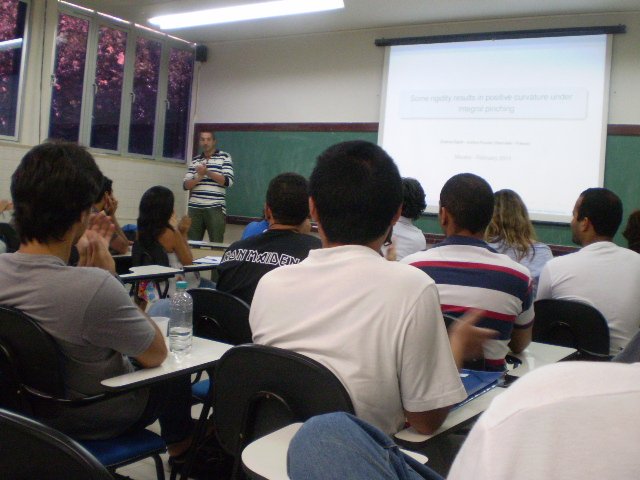 1º Workshop de Geometria Diferencial - Cobertura do Evento. Entre os dias 7 e 11 de fevereiro de 2011, o Instituto de Matemática realizou o I Workshop de Geometria Diferencial da Ufal. Este evento contou com a participação de importantes pesquisadores e estudantes de várias instituições brasileiras - Impa, USP, Unicamp, UnB, UFRJ, Puc-Rio, UFPE, UFC, Ufba, UFS, UFSM etc - e internacionais, como França, Itália, EUA, China, Romênia, México e Peru.