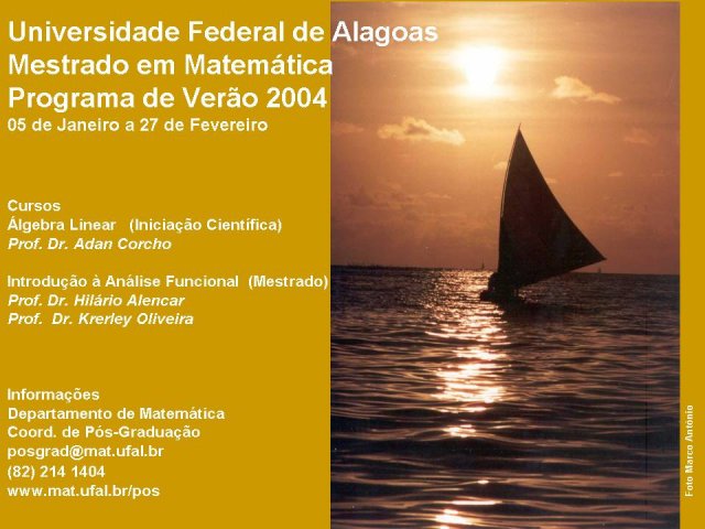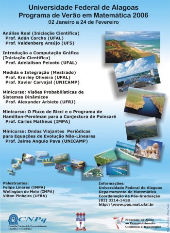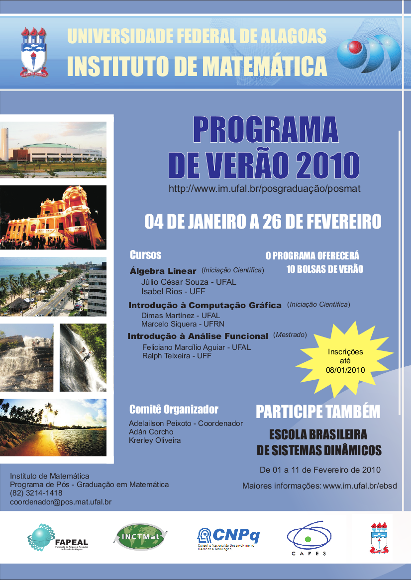 Programa de Verão: evento voltado para estudantes de graduação e pós-graduação da área de Matemática e também de áreas afins, onde são oferecidos cursos em nível de Iniciação Científica, Mestrado e Doutorado.